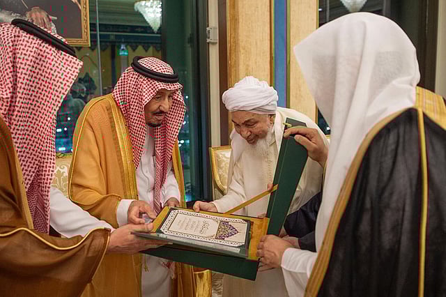 بعد ذلك تسلم خادم الحرمين الشريفين الملك سلمان بن عبدالعزيز آل سعود -حفظه الله - «وثيقة مكة المكرمة» تشرف بتقديمها عدد من كبار علماء العالم الإسلامي.