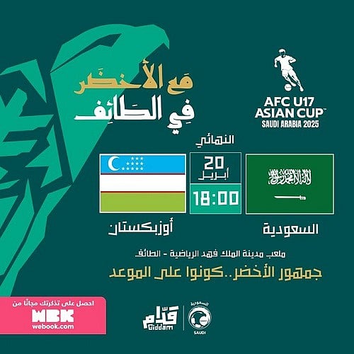 أعلن الاتحاد السعودي لكرة القدم عن فتح المدرجات، مجانًا لجماهير الوطن، في نهائي كأس آسيا تحت 17 عامًا بين السعودية وأوزبكستان، والذي سيقام يوم الأحد المقبل على ملعب مدينة الملك فهد الرياضية في الطائف.