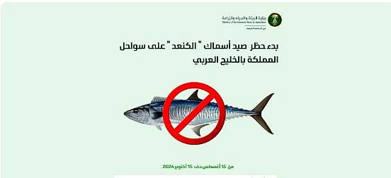 يبدأ يوم الخميس المقبل، سريان حظر صيد أسماك الكنعد باستخدام شباك الصيد الخيشومية (المناصب، والغزول) في سواحل المنطقة الشرقية لمدة شهرين.