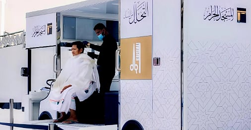 وأوضحت الهيئة أن الخدمة تمكن ضيوف الرحمن من التحلل من النسك "قص الشعر"، عبر موقعين، الأول بجوار باب المروة، والثاني في الساحة الشرقية، ويستغرق تقديم الخدمة دقيقتين لكل مستفيد.