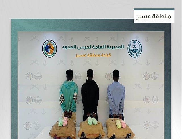 ألقت الدوريات البرية لحرس الحدود في قطاع الربوعة بمنطقة عسير القبض على (3) مخالفين لنظام أمن الحدود من الجنسية الإثيوبية، لتهريبهم (75) كيلوجراما من نبات القات المخدر.