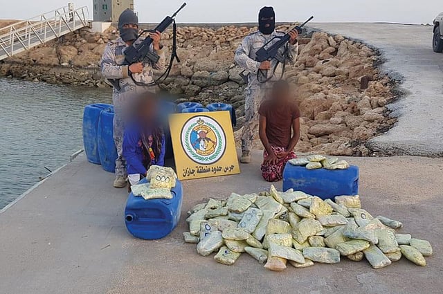وقال المقدم القريني، في بيانٍ له، إنّ الدوريات البحرية بمنطقة جازان رصدت هدفًا بحريًّا أثناء محاولته تجاوز خط الحدود لمسؤوليات قطاع فرسان، حيث تمّت محاصرته، ما أسفر توقيف القارب الذي اتضح أنّ على متنه شخصين يحملان الجنسية اليمنية، وعُثِر بحوزتهما على 527 كيلو و900 جرام من مادة الحشيش المخدر.