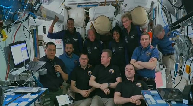 عرضت قناة «الإخبارية» الصورة التذكارية لرواد الفضاء لحظة وصول رائدي الفضاء السعوديين علي القرني وريانة برناوي محطة الفضاء الدولية.