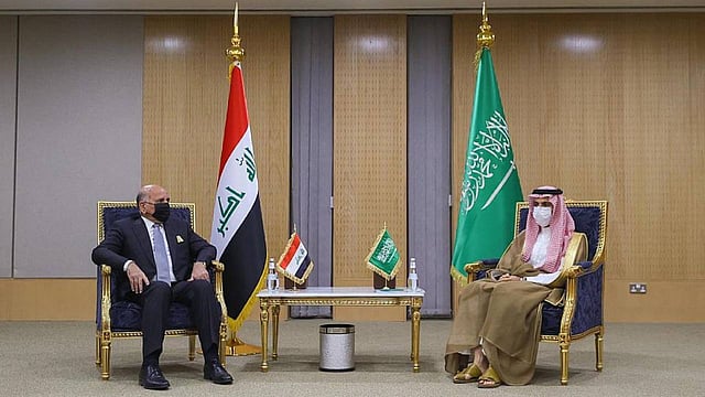وجرى خلال اللقاء استعراض أوجه العلاقات السعودية العراقية، وسبل دعمها وتعزيزها بما يخدم مصالح البلدين والشعبين الشقيقين، كما تطرق الجانبان إلى تعزيز التنسيق الثنائي المشترك وكل ما من شأنه أن يُسهم في استقرار المنطقة وحفظ الأمن والسلم الدوليين، بالإضافة إلى تبادل وجهات النظر حيال العديد من القضايا الإقليمية والدولية.