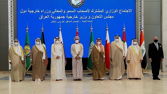 24.رحب المجلس الوزاري بمخرجات (مؤتمر بغداد للتعاون والشراكة) الذي عقد في 28 أغسطس 2021م، مؤكداً على ضرورة دعم استقرار وتنمية جمهورية العراق الشقيقة في جميع المجالات، ورفض التدخلات الخارجية في شؤونها الداخلية، ودعم جهود الحكومة العراقية في تعزيز مؤسسات الدولة وتوحيد الجهود إقليمياً ودولياً بما ينعكس إيجاباً على أمن واستقرار المنطقة.