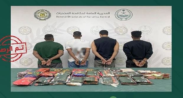 القبض على مواطنين و3 مقيمين من الجنسية الإثيوبية والإرترية لترويجهم الحشيش والإمفيتامين بالرياض وحائل