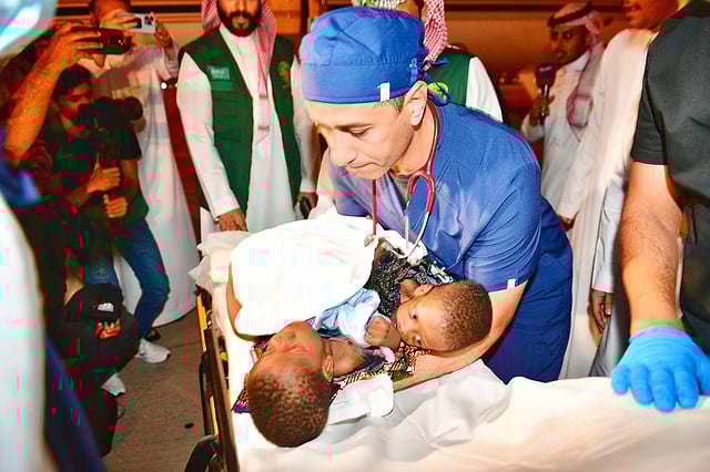 إنفاذًا لتوجيهات خادم الحرمين الشريفين الملك سلمان بن عبد العزيز آل سعود وصاحب السمو الملكي الأمير محمد بن سلمان بن عبد العزيز ولي العهد رئيس مجلس الوزراء -حفظهما الله- وصل اليوم إلى مطار الملك خالد الدولي بالرياض التوأم السيامي التنزاني "حسن وحسين" برفقة والدتهم، قادمين من مدينة دار السلام في جمهورية تنزانيا عبر طائرة الإخلاء الطبي، حيث نُقل التوأم فور وصولهما إلى مستشفى الملك عبد الله التخصصي للأطفال بوزارة الحرس الوطني؛ لدراسة حالتهما والنظر في إمكانية إجراء عملية فصلهما.