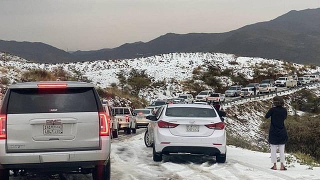 واستوقفت الأجواء الماطرة والجبال المكسوة بالبرد أهالي المنطقة وعابري الطرق السياحية للاستمتاع بشلالاتها المنهمرة وركام البرد على جنبات الطرق.
