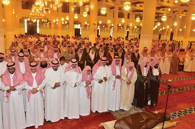 وأمّ المصلين مفتي عامّ المملكة رئيس هيئة كبار العلماء وإدارة البحوث العلمية والإفتاء الشيخ عبدالعزيز بن عبدالله آل الشيخ.