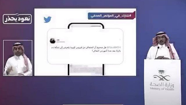 ونشر المتحدث باسم الوزارة الدكتور محمد العبدالعالي عبر حسابه على تويتر، فيديو أوضح من خلاله أن موضوع التخثرات او الجلطات الوريدية التي تصيب أوردة الرئة أو غيرها من أوردة الجسم كالأطراف السفلية، موجودة في حالات حرجة أو متقدمة جدًّا من المرضى.