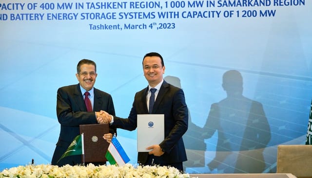 وخلال زيارة فخامة الرئيس شوكت ميرزيوييف إلى المملكة العربية السعودية في شهر أغسطس من العام الماضي 2022، وقعت أكوا باور مع وزارة الطاقة ووزارة الاستثمار والصناعة والتجارة لجمهورية أوزبكستان اتفاقية تعاون استثماري بقيمة 10 مليارات دولار لاستثمارات جديدة في السنوات الخمس المقبلة، وأكثر من 5 مليارات دولار تم التعهد بها. وستسهم المشاريع الكهروضوئية وأنظمة تخزين الطاقة بالبطاريات في طشقند وسمرقند وبخارى في 2.5 مليار دولار من الاستثمارات الجديدة، وذلك ضمن حجم الاستثمار المستهدف البالغ 10 مليارات دولار. ووقعت الشركة مؤخراً أيضاً اتفاقيات شروط واسعة النطاق لتطوير منشأة الهيدروجين الأخضر ومشروع تجريبي للأمونيا الخضراء في الجمهورية.