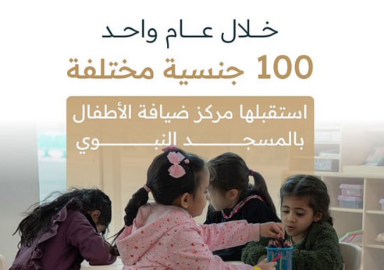 أعلنت وكالة الهيئة العامة للعناية بشؤون المسجد النبوي استفادة من أكثر من 48 ألف طفل وطفلة من 100 جنسية من خدمات مركز ضيافة الأطفال بجوار المسجد النبوي، والبرامج والأنشطة التعليمية والترفيهية والتوعوية التي يقدمها المركز للأطفال ما بين سنتين إلى تسع سنوات.