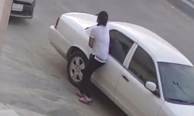 ووثق مقطع مصور، قيام أحد الأشخاص بمحاولة فتح إحدى السيارات المتوقفة أمام أحد المنازل بحي المنار في جدة، وقام بإشعال النار بالسيارة، والتي كادت أن تمسك به لولا هروبه.