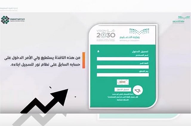 وأوضحت إدارة تقنية المعلومات بتعليم محافظة الطائف، أنه في حال وجود أبناء مرتبطين بولي الأمر تظهر رسالة تحقق يُطلب فيها رقم هوية أحد الأبناء المرتبطين، وبعد التحقق منها يطلب النظام إدخال رقم جوال، ويجب التأكد من إدخال الرقم بشكل صحيح لتصل رسالة ببيانات الدخول عليه، وتظهر صفحة يتم فيها إدخال اسم المستخدم وكملة المرور المرسلة عبر الجوال ثم تظهر نافذة لإدخال كلمة سر جديدة وتأكيدها وإدخال البريد الإلكتروني لولي الأمر.