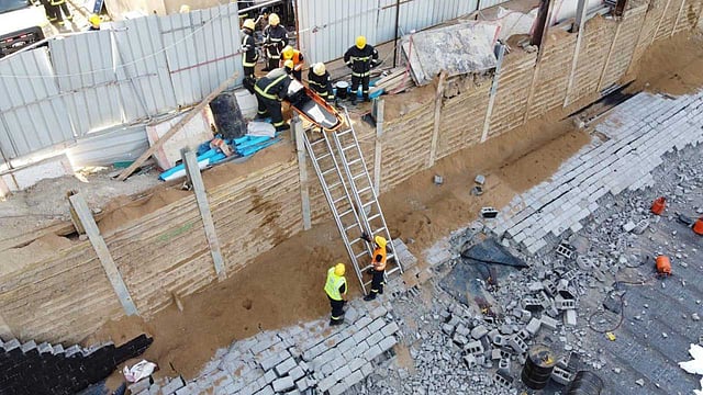 وباشرت الفرق عملها لإخراج العمال المحتجزين تحت الأنقاض والبحث في محيط الانهيار، والتأكد من عدم وجود أشخاص آخرين باستخدام المعدات والأجهزة.