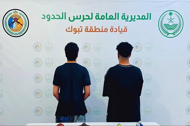 ضبطت الدوريات الساحلية لحرس الحدود في حقل بمنطقة تبوك مواطنين مخالفين للائحة الأمن والسلامة لمزاولي الأنشطة البحرية في المناطق البحرية للمملكة العربية السعودية؛ وذلك لممارستهما الصيد دون تصريح، بحوزتهما أسماك مصيدة.