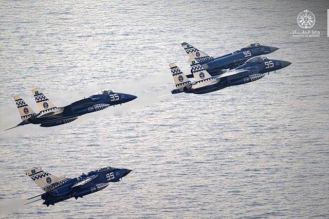 نفذت القوات الجوية استعراضًا جويًا مبهراً في سماء مدينة جدة، احتفاءً باليوم الوطني السعودي الـ95.