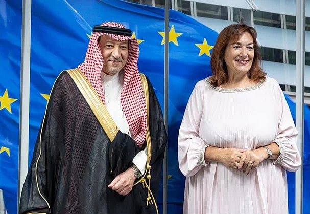 حضر اللقاء، رئيسة بعثة المملكة لدى الاتحاد الأوروبي السفيرة هيفاء الجديع.