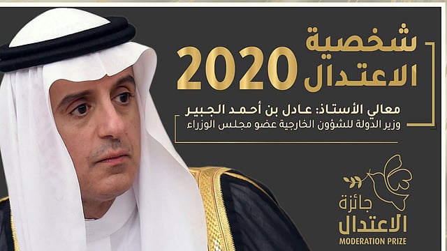 أعلن أمير منطقة مكة المكرمة الأمير خالد الفيصل، عن فوز وزير الدولة للشؤون الخارجية عضو مجلس الوزراء، عادل بن أحمد الجبيرـ بجائزة الاعتدال في دورتها الرابعة لعام 2020.