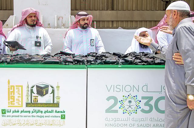 وزعت حملة «خدمة الحاج والزائر وسام فخر لنا 7» التابعة للرئاسة العامة لشؤون المسجد الحرام والمسجد النبوي اليوم الثلاثاء، ألف هدية على الحجاج والزوار، وذلك بالساحات الشرقية في المسجد الحرام.