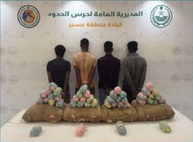 قبضت الدوريات البرية لحرس الحدود في قطاع الربوعة بمنطقة عسير على (4) مخالفين لنظام أمن الحدود من الجنسية الإثيوبية، لتهريبهم (80) كيلوجرامًا من نبات القات المخدر.