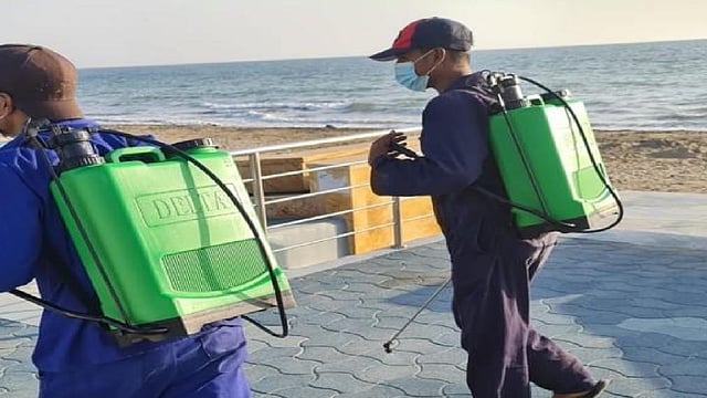 بالإضافة لتنفيذ أعمال تعقيم مكثفة في مختلف المرافق الخاصة بأماكن الجلوس وألعاب الأطفال، وتعقيم الحاويات المخصصة للنفايات.
