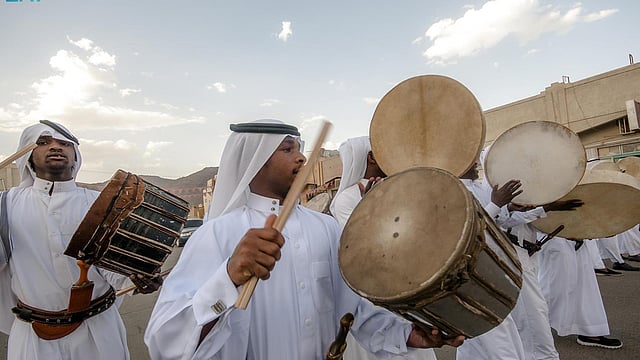 يستقبل أهالي نجران عيد الفطر المبارك من كل عام بأبهج ألوان الفنون الشعبية احتفالاً به وبأيامه لتمتلئ الأحياء والقرى والطرقات أفراحاً دائمة وسعادة مستمرة، في تناغم فلكلوري وشعبي من الرقصات ذات السمة الواحدة من الرقص، وأيضاً لون واحد من الأغاني والأناشيد الشعبية التي تختلف فقط بحسب مهارة الراقصين وقدرتهم على الحفظ والتذكر، ضمن ألواناً شعبية من فنون "الزامل، والرزفة، ولعب الطبول" ذات البريق الأخاذ والمذاق الرائع للفرح والسعادة والبهجة.