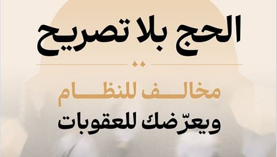 وأوضحت الوزارة أن التصريح يسهم في إدارة الحشود بكفاءة، وتفويجها بشكل متوازن، ورفع جاهزية الخدمات الميدانية، في الأوقات والمواقع والمواعيد المحددة للحملات، مشددة على أن مخالفة أنظمة وتعليمات الحج، تعرض مرتكبيها للعقوبات النظامية، وتنعكس سلبًا على أمن وسلامة الحجاج وكفاءة الخدمات، محذرة من الحملات غير المرخصة والإعلانات المضللة عبر مواقع التواصل الاجتماعي.