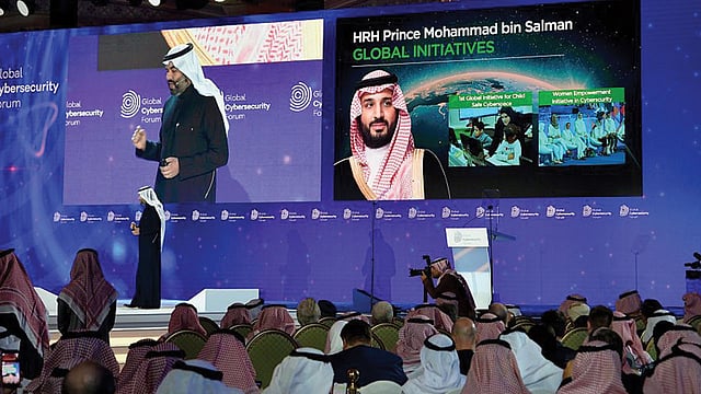 وأشار أمير الرياض إلى أن المملكة تدرك حجم التحديات الكبيرة والمتجددة التي تواجهها دول العالم مع التوســع والاســتخدام الكبير للتقنيــة والاعتماد عليها في مسارات الحيـاة اليوميـة للمجتمعات وفي الطاقــة والإنتــاج الصناعــي، والخِدْمــات المصرفيــة وخِدْمــات الاتصــالات والخِدْمات الطبية والإنسانية والبحث العلمي وغيرها من الخِدْمات والمنظومات الأمنية والدفاعية والاقتصادية؛ مـما يسـتوجب تعزيـز الأمـن السـيبراني.