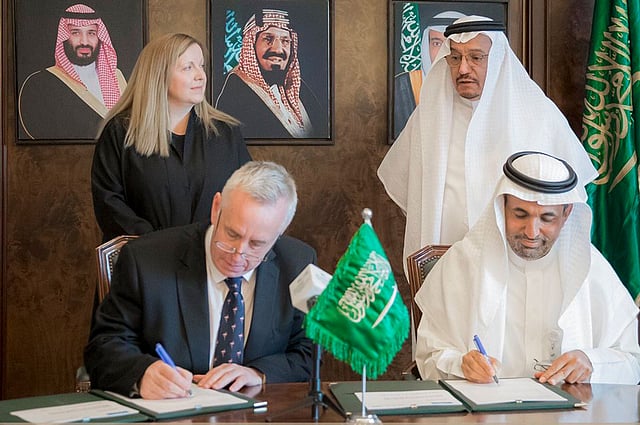 وقع الاتفاقية وكيل الوزارة لشؤون الابتعاث الدكتور جاسر بن سليمان الحربش، ومدير التعليم والجودة في إنجلترا لتدريب الأطباء السعوديين لمرحلتي الإقامة الطبية والتخصص الدقيق البروفيسور جيد بيرن .