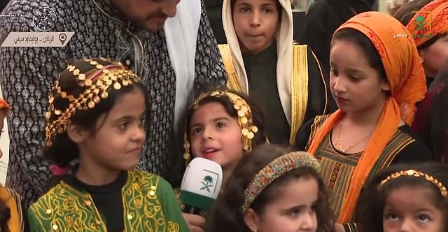 وظهرت الطفلة شيخة، في مقطع فيديو نشرته "قناة السعودية"، وهي ترتدي الزي التقليدي، وقالت إنها سعيدة بمشاركتها في احتفالات يوم التأسيس.