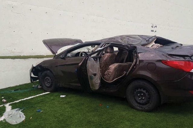 وأظهر فيديو قصير متداول، رجال الدفاع المدني، محيطين بالسيارة التي سقطت من طريق يعلو ملعب كرة القدم.