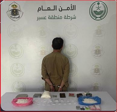 قبضت شرطة منطقة عسير على مقيم من الجنسية الباكستانية بمحافظة خميس مشيط لترويجه (1.5) كيلوجرام من مادة الميثامفيتامين المخدر (الشبو).