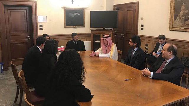 كما التقى الجبير والسفير، عقب ذلك، كلٌ على حدة، نائب رئيس لجنة الشؤون الخارجية لدى مجلس الشيوخ الإيطالي، رئيسة مؤسسة بيتينو كراسكي السيدة ستيفانيا كراكسي، وعضو لجنة الشؤون الخارجية المستشار السياسي للمتحدث باسم مجلس الشيوخ الينتينو الينتيني.