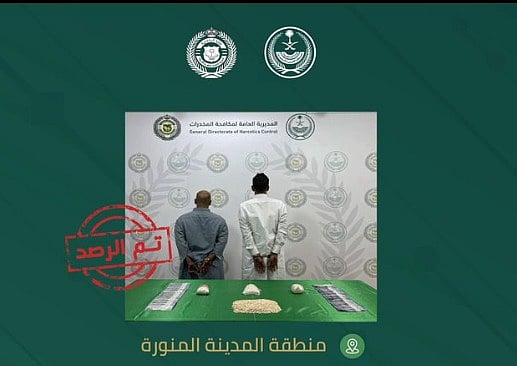 وأشارت المديرية العامة لمكافحة المخدرات إلى إيقافهما واتخاذ الإجراءات النظامية بحقهما، وإحالتهما إلى النيابة العامة.