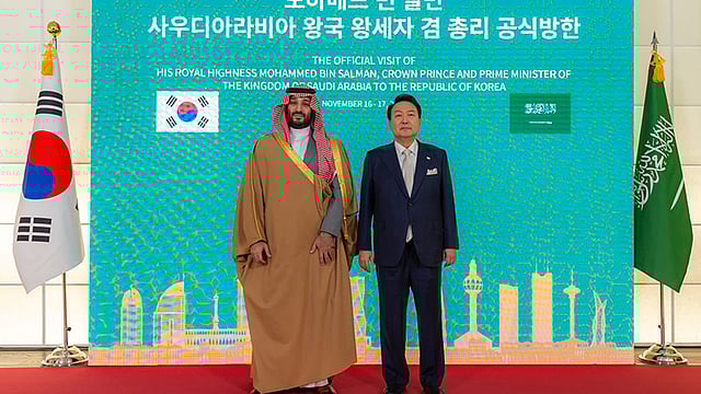 فيما أكد رئيس جمهورية كوريا، في كلمته خلال جلسة المباحثات الحرص على الارتقاء بالعلاقات الثنائية إلى مستوى جديد، مشيراً إلى أن المملكة العربية السعودية تفخر بمستقبل جديد من خلال تنفيذ رؤية المملكة 2030 بقيادة سمو ولي العهد، ومتطلعاً إلى توسيع وتطوير التعاون الثنائي والاستثمار في مجالات النمو الجديدة والمشاريع الضخمة مثل نيوم والصناعات الدفاعية والطاقة المستقبلية مثل الهيدروجين والثقافة والسياحة.