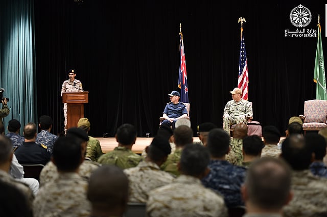 وتسلَّم العميد البحري الركن فهد بن صنيدح الجعيد من القوات البحرية الملكية السعودية قيادة القوة من الجانب النيوزلندي، وألقى كلمة أكد فيها جاهزية القوات البحرية التامة لأداء المهام المناطة بها، مشيرًا إلى أن المملكة تتشرف بقيادة هذه القوة للمرة الرابعة.