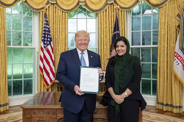 أعلنت وزارة الخارجية في ساعة مبكرة من اليوم الثلاثاء، عن أن سفيرة الرياض الجديدة لدى واشنطن، الأميرة ريما بنت بندر بن سلطان آل سعود، سلمت أوراق اعتمادها للرئيس الأمريكي دونالد ترامب.