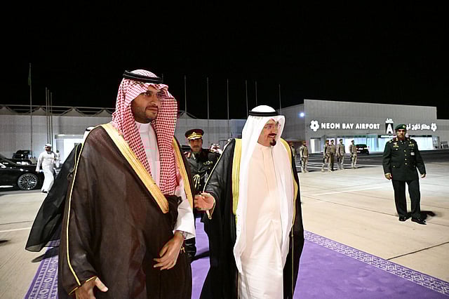 وكان الشيخ أحمد عبدالله الأحمد الصباح، رئيس مجلس الوزراء بدولة الكويت، قد وصل إلى نيوم في وقت سابق اليوم، حيث كان في استقباله الأمير تركي بن محمد بن فهد بن عبدالعزيز وزير الدولة عضو مجلس الوزراء، والأمير سلطان بن سعد بن خالد سفير خادم الحرمين الشريفين لدى دولة الكويت، والقنصل العام لدولة الكويت في جدة يوسف التنيب، والقائم بالأعمال بالإنابة في سفارة دولة الكويت بالمملكة حمد السلوم، والملحق الدبلوماسي بالقنصلية الكويتية في جدة ظافر المطيري.