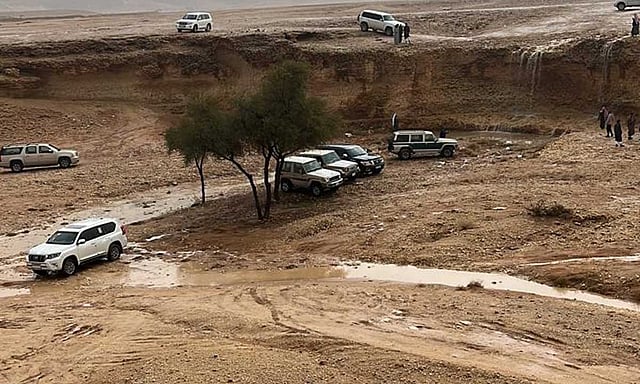 رغم برودة الأجواء والحالة المطرية التي تشهدها بعض مناطق المملكة حاليا خاصة منطقة الرياض، توافد العديد من المواطنين على شلالات الرمحية جنوب الرياض للتمتع بمنظرها.