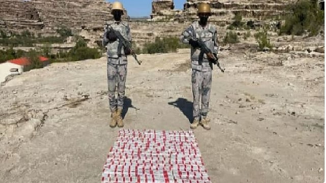 أحبطت الدوريات البرية لحرس الحدود في قطاع الدائر بمنطقة جازان تهريب 71,700 قرص خاضع لتنظيم التداول الطبي، وجرى استكمال الإجراءات النظامية الأولية، وتسليم المضبوطات لجهة الاختصاص.
