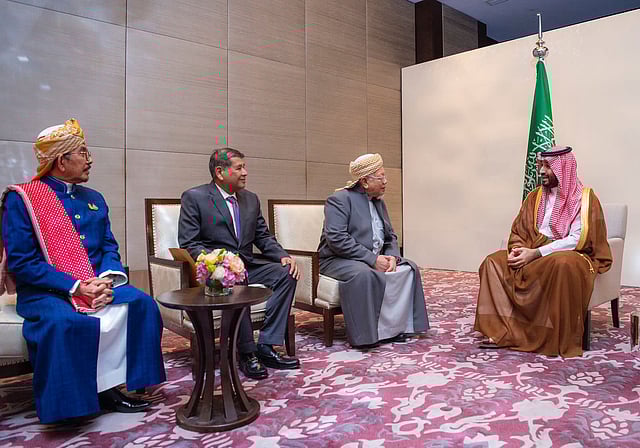 استقبل صاحب السمو الملكي الأمير محمد بن سلمان بن عبدالعزيز آل سعود ولي العهد رئيس مجلس الوزراء، في مقر إقامته بالعاصمة التايلندية بانكوك، اليوم، أعضاء المجلس المركزي الإسلامي في تايلند.