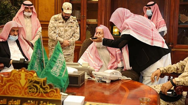 بعد ذلك وجه سماحته كلمة عبر - الاتصال اللاسلكي - للمرابطين في الحد الجنوبي؛ حيث أوصاهم فيها بالصبر والاحتساب والجهاد في سبيل الله من أجل الدفاع عن أرض الحرمين الشريفين ومقدراتها.