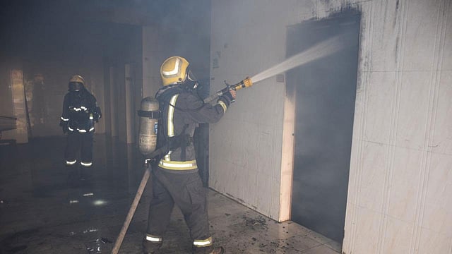 تم إجلاء 150 شخصًا من عمارة مكونة من أربعة طوابق بالرياض، بسبب اندلاع حريق ضخم.