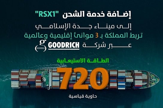 وتعمل خدمة الشحن الجديدة على ربط ميناء جدة الإسلامي بـ3 موانئ إقليمية وعالمية، تشمل ميناء بورتسودان في السودان، وميناء جيبوتي في جيبوتي وميناء جبل علي بالإمارات، بطاقة استيعابية تصل إلى (720) حاوية قياسية.