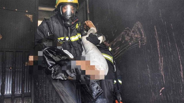 وأضاف القرني، أنه على الفور جرى تحريك الفِرَق اللازمة وسيارات السلالم والمعدات المساندة، وبوصول الفِرَق للموقع، اتضح أن الحالة عبارة عن حريق بشقة بالدور الثاني بعمارة مكونة من دورين وملحق؛ حيث كان الحريق كليًا بالصالة ووجد عددٌ من الأشخاص تحتجزهم ألسنة اللهب، وعلى الفور تمت مباشرة الحالة من قِبَل أفراد الإنقاذ والإطفاء باقتحام الموقع وإخراج 6 أشخاص والعمل على إخماد الحريق بشكل تام.