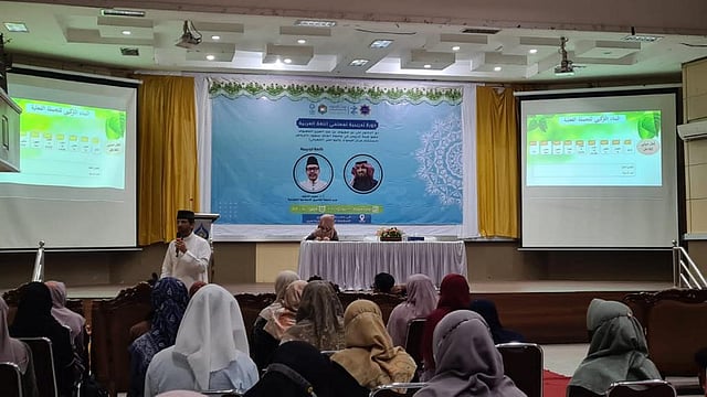 دار موضوع اللقاء حول أدوات تطوير تعليم اللغة العربية في إندونيسيا ووسائله، وابتكار مسارات عملية تسهم في تعميق حضور اللغة العربية، وتكثيف استخدامها في الأنشطة المدرسية على المستوى الوطني في إندونيسيا، وتكوين بيئة لغوية تستخدم اللغة العربية، وتساعد على تطوير مستوى الأداء اللغوي للطلاب في المدارس الإندونيسية.