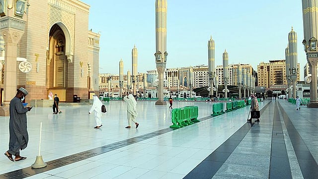 وتتجلّى في ساحات المسجد النبوي الخارجية أبهى صور ومشاهد العناية بمسجد رسول الله، صلى الله عليه وسلم، وتبرز في الساحات المكشوفة، وسطحه الذي تمت تغطيته برخام تاسوس اليوناني الأبيض العاكس للحرارة على مساحة تبلغ 108 آلاف متر مربع تقريباً, ويتميّز هذا النوع من الرخام ببرودته مهما اشتدّت حرارة الطقس خلال فصل الصيف، فلا يتأثر بارتفاع درجة الحرارة، ما يوفّر الراحة والأجواء المعتدلة للمصلين في الأماكن المخصصة في سطح المسجد النبوي أو في الساحات تحت المظلات، إضافة إلى خدمة تشغيل المراوح المزودة برذاذ المياه لتلطيف الأجواء.