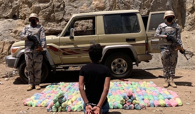 وأضاف القريني لقناة "الإخبارية": "الحرب على المخدرات تتواصل، وأسفرت جهود دوريات حرس الحدود من إحباط محاولة تهريب 35 طن من نبات القات المخدر، و483 كيلوجراما من مادة الحشيش المخدر خلال الفترة من 14/ 8/ 1444هـ حتى 26/ 8/ 1444 هـ، وتم القبض على مهريبها وعددهم 275 متهما".