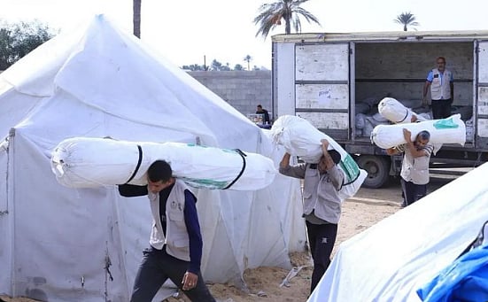 وزع مركز الملك سلمان للإغاثة والأعمال الإنسانية، عبر الشريك المنفذ المركز السعودي للثقافة والتراث، مساعدات إيوائية جديدة تشتمل على كميات كبيرة من الخيام للأسر النازحة التي فقدت منازلها جراء الأزمة الإنسانية في جنوب قطاع غزة، تقيهم من منخفض جوي المصحوب برياح شديدة وأمطار غزيرة، ضمن الحملة الشعبية السعودية لإغاثة الشعب الفلسطيني الشقيق.